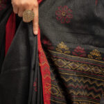 Hand stitched designer cotton black Saree with BP