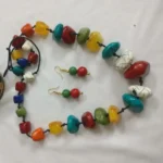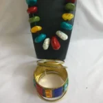 Multicolored Tribal Beads Necklace Necklace Set with Multicolored Bangle