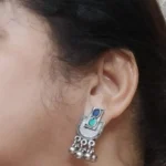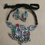 Silver Oxidised Multicolored Peacock Choker with Earrings