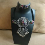 Silver Oxidised Minakari Choker with Earrings,Bangle & Ring Set